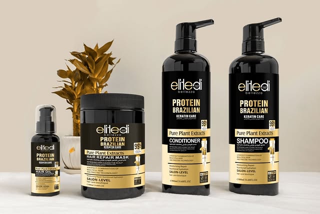 The EliteDi Bellezza Protein Brazilian Keratin Care collection is a comprehensive, salon-level system designed to rejuvenate and repair your hair. This powerful set includes a shampoo, conditioner, a hydrating hair mask, and a lightweight hair oil. Each product is formulated with 99% pure plant extracts, along with protein and Brazilian keratin, to deliver deep moisturizing and nutritional benefits. This collection works together to cleanse the scalp, repair damage, and leave your hair feeling soft, healthy, and revitalized. It’s the perfect all-in-one solution for achieving professional-quality results from the comfort of your home.