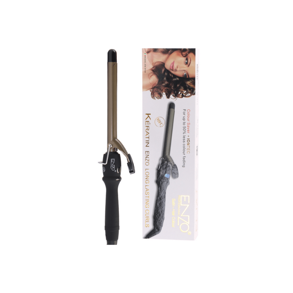 A professional-grade ENZO curling iron with Keratin-Ionic technology for creating long-lasting curls and protecting hair color from fading.