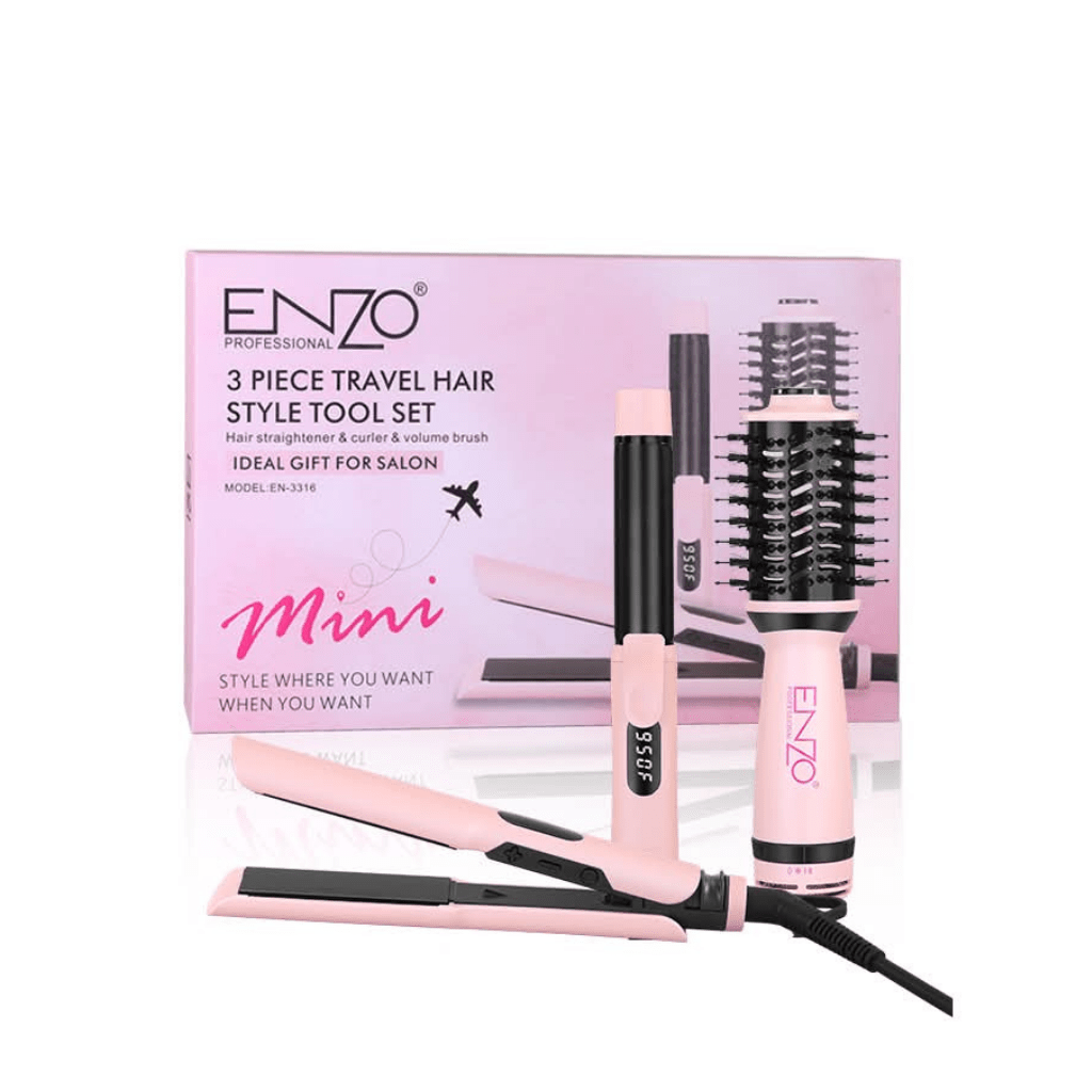 The ENZO Professional 3-Piece Travel Hair Style Tool Set is a compact and versatile kit for styling on the go. This set includes a mini hair straightener, a curler, and a volume brush, providing all the essential tools you need to create a variety of hairstyles, anywhere and at any time. Its small size makes it an “ideal gift for salon” professionals or anyone who wants a portable styling solution without compromising on quality.