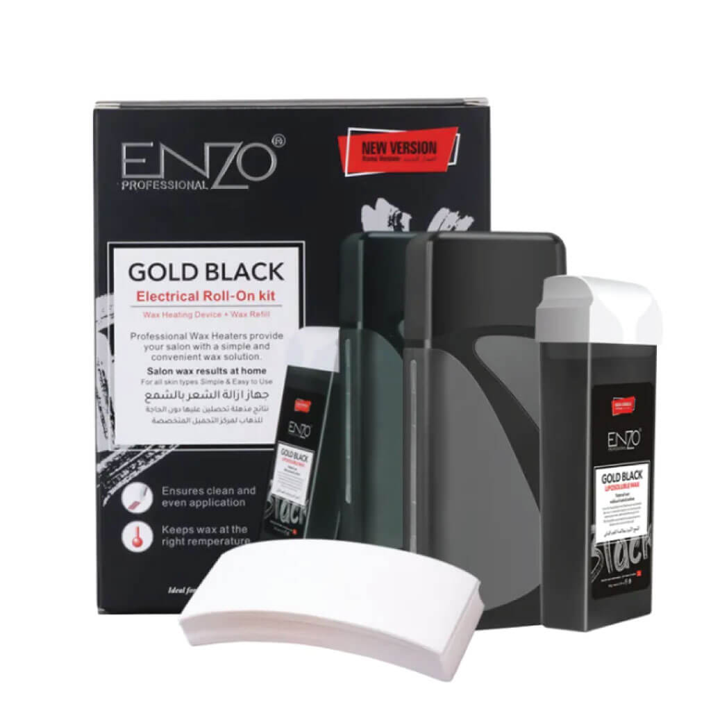 A new version of the ENZO PROFESSIONAL Gold Black Electrical Roll-On Kit, this complete system provides a salon-quality, mess-free waxing experience at home. It includes an electrical roll-on device and wax, designed for quick, effective, and professional hair removal.